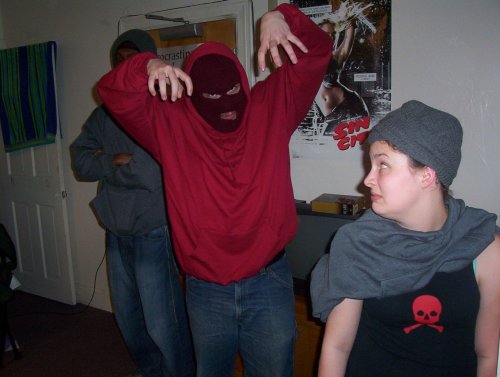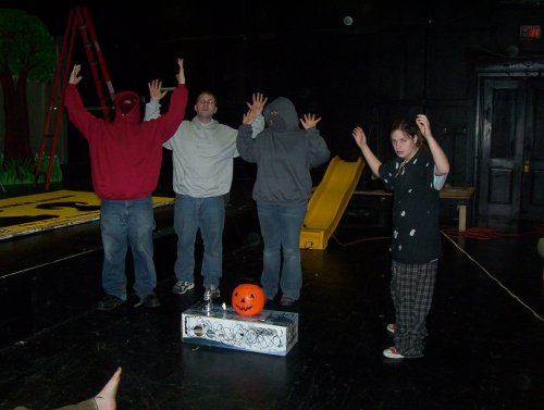 From left to right: Me, Maxjulian as a cultist, Jess as a cultist, Beth as a cultist, Brian as Howie, and Koleszar as the cam op.