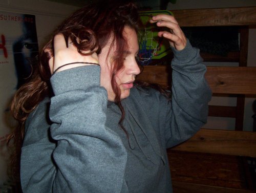 The cultists raise their arms when they say the name of their god, Cheboopaloo. The zombie sees them doing that and decides to follow suit...a bit more slowly and zombie-ish. I was really impressed with her doing that without my directing her to do so. Her performance was wonderful! I had to struggle to keep the camera off of her, but alas, it's not her story so I couldn't focus on her cool character. I can't possibly say just how much she impressed me. The whole crew is really dedicated. I couldn't ask for a better crew even if I were in Hollywood. You people are awesome! |